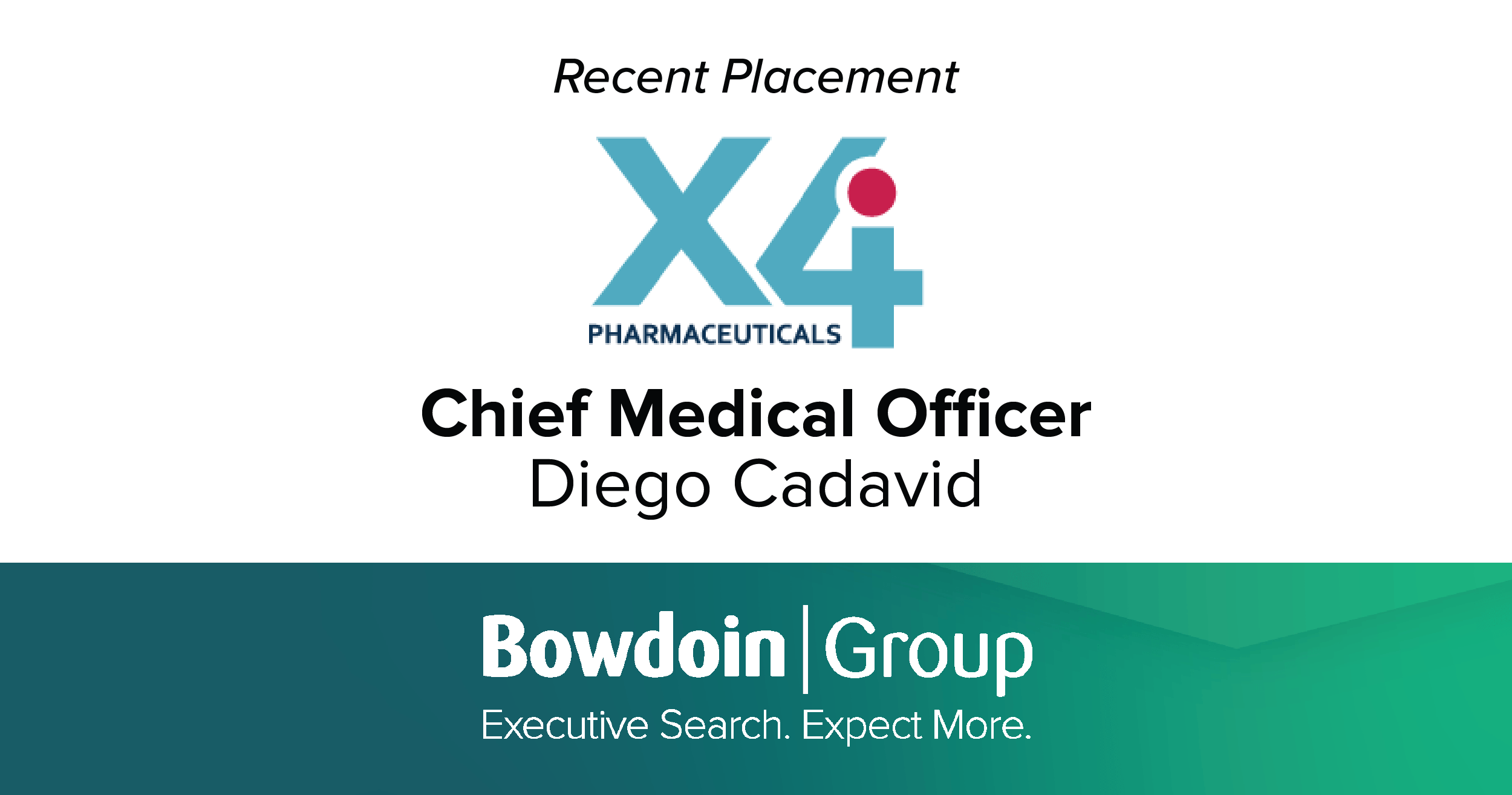 The Bowdoin Group Places Diego Cadavid as Chief Medical Officer at X4 Pharmaceuticals